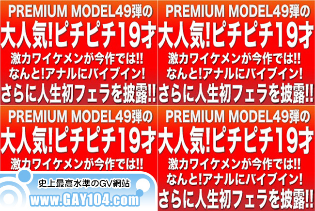 プレミアムモデル第49弾‼大人気!!ピチピチ19歳☆ 激カワイケメンが今作、なんと!!アナルにバイブイン!!さらに人生初フェラを披露☆まだあどけなさの残る、ピチピチ19歳!!ジャニ系プレミアムモデルの再出演のご要望多数!!スタッフが再出演を交渉‼しかも今作では何と、アナルにローターを突っ込んだままスタッフのチンコをしゃぶりまくってしまう期待作‼スタッフ一押し★必見です…前作より、緊張がほぐれたのかエロさは増しスタッフと絡み合うかのように撮影はスタート‼キス→強制フェラ→ローターをアナルにIN!!さらに二本のチンコを重ね合わせシコシコ‼自らの手でスタッフのチンコと自分のチンコを握り感じまくる場面も…最後はスタッフをイカし、自らも超大量発射でフィニッシュ★ここでしか見られない貴重映像…この機会お見逃しなく‼